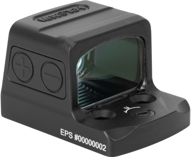 HOLOSUN séria EPS model EPS RD (červená LED). Predstavuje veľmi robustný, pištoľový micro kolimátor s kompaktnými rozmermi a nízkou hmotnosťou 40,5 g. Hlavnou myšlienkou série EPS bolo vyvinúť uzavretú a veľmi odolnú konštrukciu, ktorá na rozdiel od modelu HE509T nebude závislá na proprietárnej montáži HOLOSUN (dostupné montážne doštičky pre CZ P- 10 OR a GLOCK MOS). Posledný a zároveň veľmi dôležitým parametrom je výška základy, ktorá je vôbec najnižšia zo všetkých pištoľových kolimátorov HOLOSUN. Strelec tak môže bez problémov využiť na streľbu pevné mieridlá.