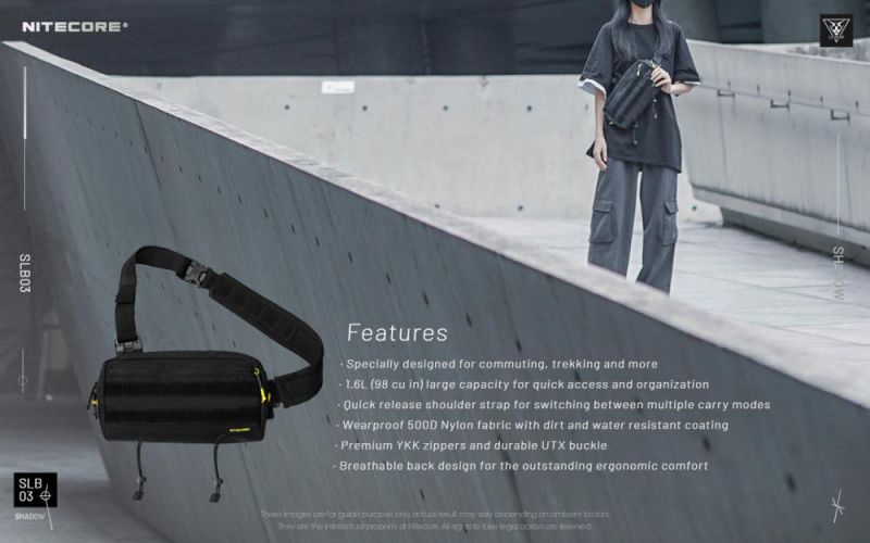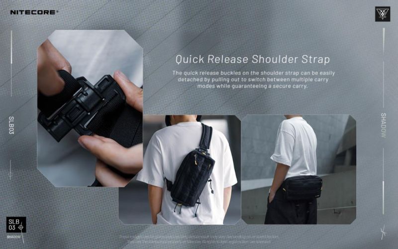 NITECORE SLB03 je taktická kapsa cez rameno, ktorá vyniká svojou kompaktnosťou, odolnosťou a funkčnosťou. Je navrhnutá pre každodenné použitie, či už ide o mestské prostredie alebo výlety do prírody. Vďaka svojmu modernému dizajnu a vysokokvalitným materiálom je ideálnou voľbou pre tých, ktorí potrebujú praktický a odolný spôsob prenášania svojich vecí.